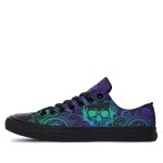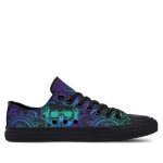 Step into the mysterious allure of the Madala Skull Black Lowtop Sneakers, where edgy design meets everyday comfort. These unique sneakers feature an intricate mandala skull pattern, setting them apart in a world of standard footwear. Crafted with a breathable canvas upper, these shoes ensure your feet stay cool and comfortable, no matter where your day takes you. The cushioned insole offers sustained comfort, perfect for long days on your feet, while the durable rubber outsole provides exceptional traction and longevity, making them a reliable choice for any activity.