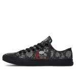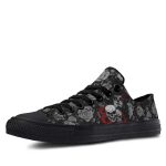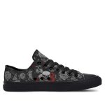 Embrace a mix of tradition and contemporary style with the Mexican Skull Dark Pattern Black Lowtop Sneakers, a must-have for anyone looking to express their unique style through their footwear.