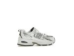 Step into style with the New Balance 530 White Natural Indigo (GS) sneakers. These fresh kicks boast a clean white base, accented by pops of natural indigo and silver metallic for a subtly striking look. Designed for girls, the GR530SB1 model offers a comfortable and fashionable choice for everyday wear or adding a touch of retro flair to any outfit. The classic New Balance 530 silhouette remains a timeless favorite, updated here with a contemporary color scheme.
