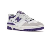 Step out in style with the New Balance 550 White Purple trainers. These stylish kicks boast a clean, classic design perfect for everyday wear. The upper is crafted from premium white leather, complemented by subtle grey suede overlays for a touch of texture and depth.