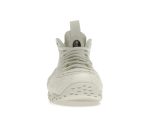 The shoe boasts a striking all-white upper, crafted from the iconic Foamposite material. Its smooth, seamless construction creates a futuristic, sculptural silhouette reminiscent of the serene patterns found in traditional Japanese zen gardens. This minimalist aesthetic is a testament to both Nike’s innovative design and Comme des Garons Homme Plus’ signature understated elegance.