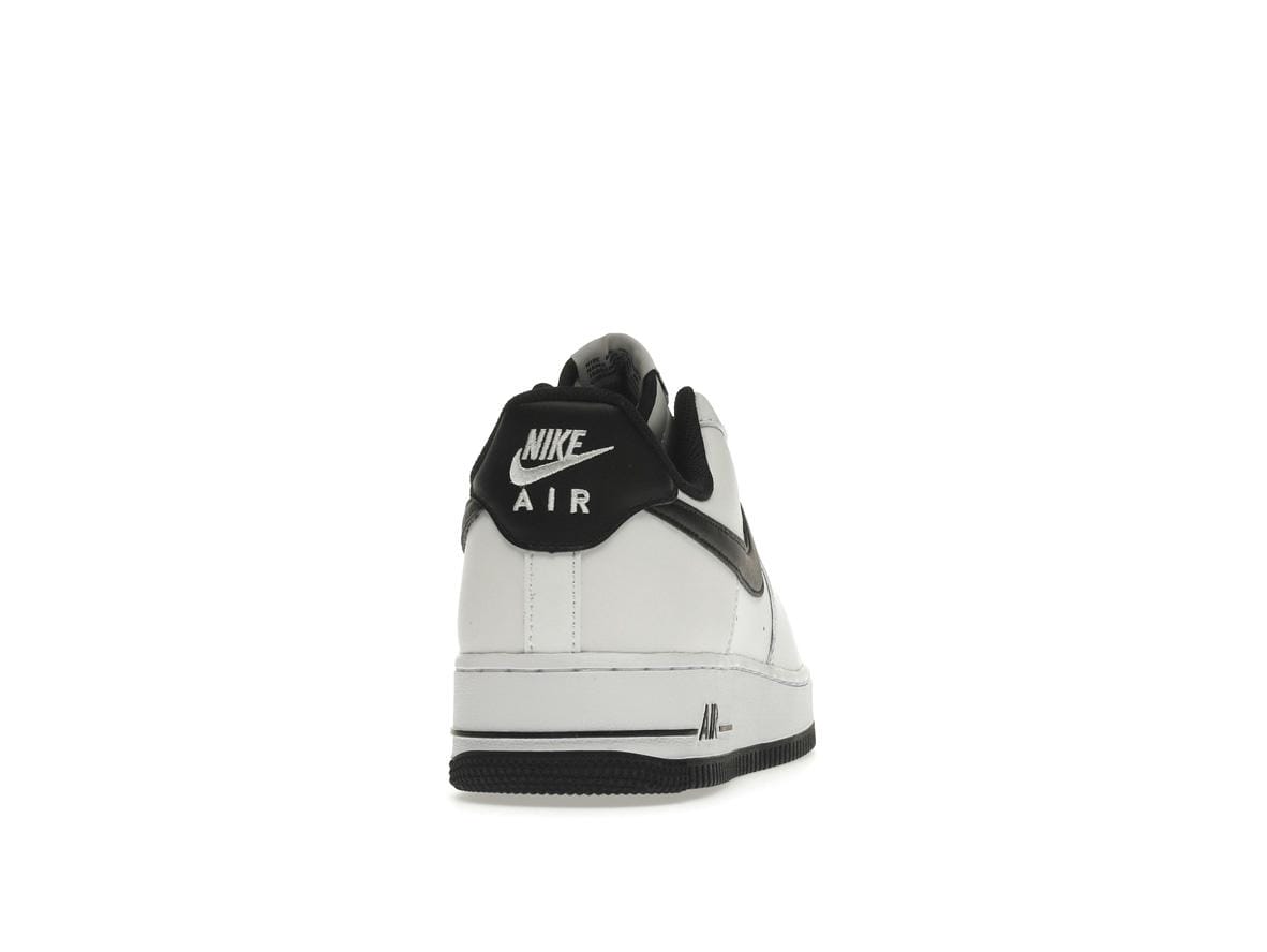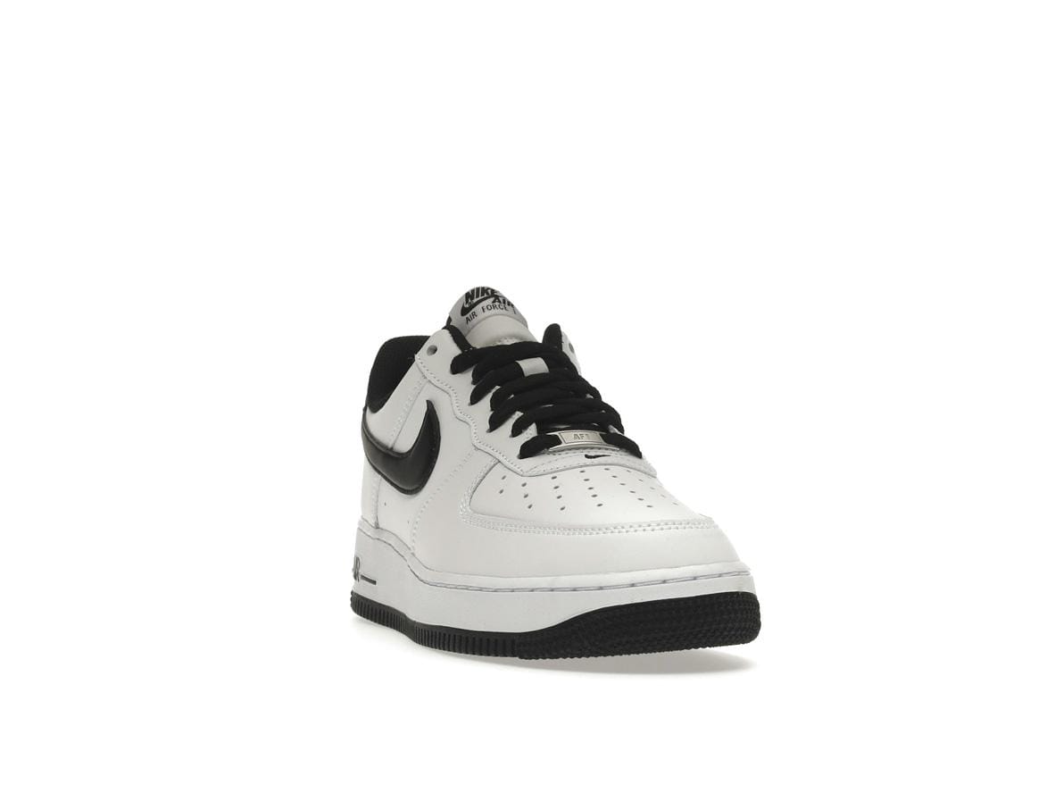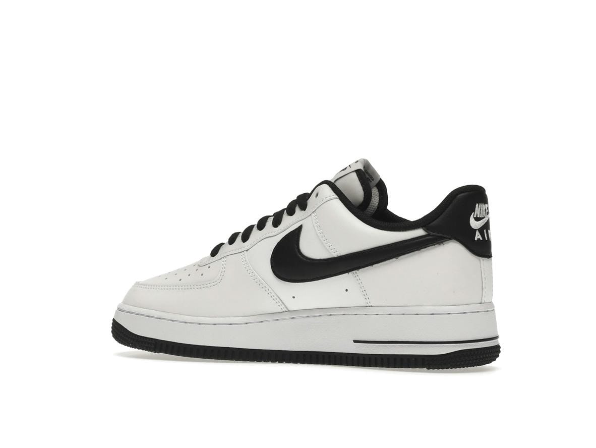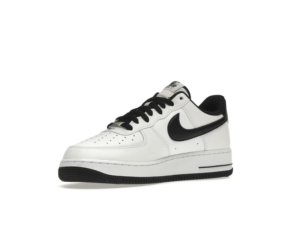 The instantly recognizable black Swoosh logo stands out against the white leather, while black laces and a black heel tab with white Nike embroidery add refined details. The white and black tongue, complete with a Nike Air tongue tag, offers a subtle pop of contrast. This classic colorway is a testament to the enduring appeal of the Air Force 1, making it a versatile choice for any wardrobe.