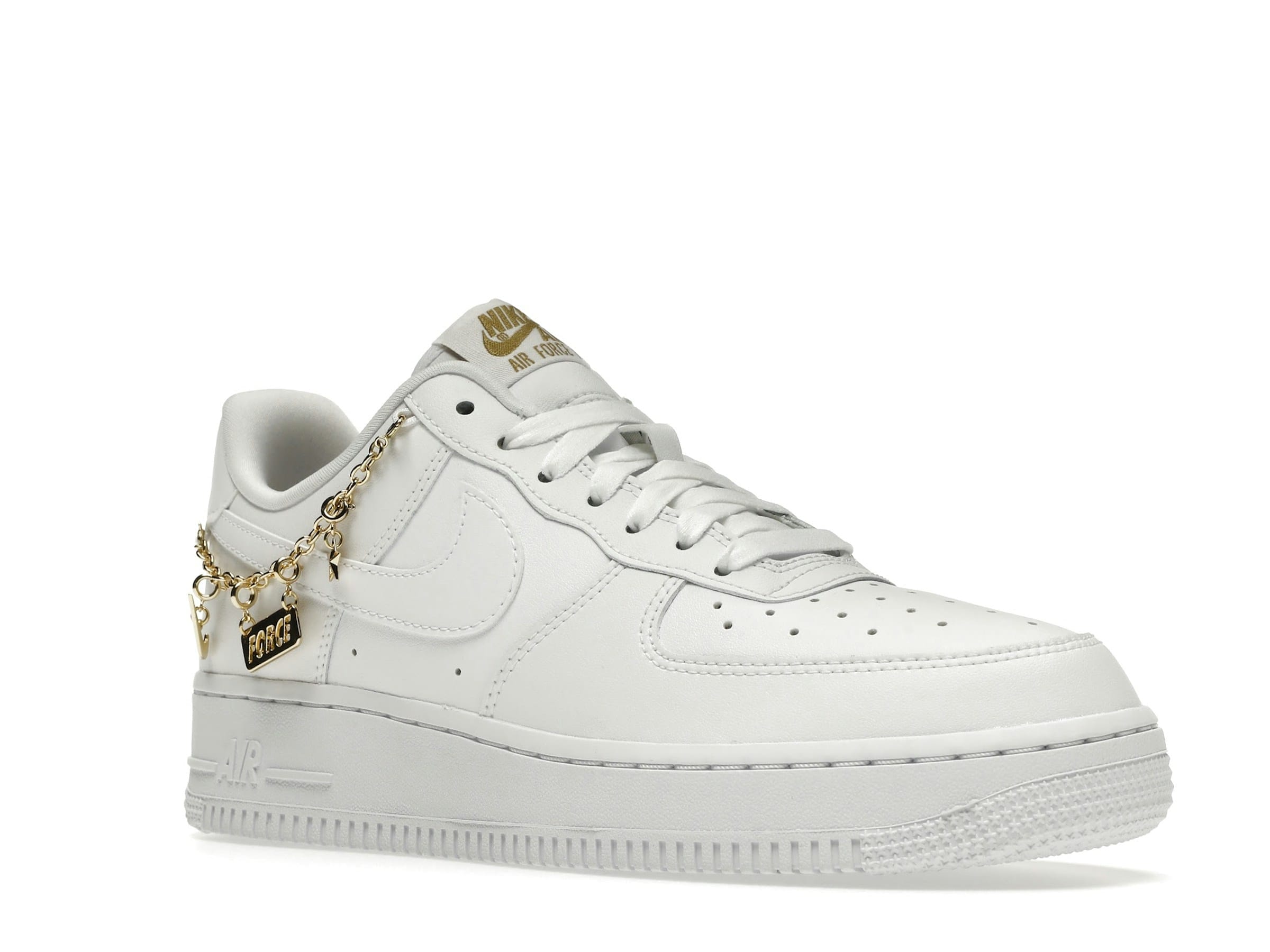The Nike Air Force 1 Low LX White Pendant boasts a premium white leather construction, metallic gold accents, and signature Nike branding, making them a must-have for the discerning sneaker enthusiast. Experience the perfect combination of comfort and style with this coveted design.