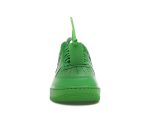 The Nike Air Force 1 Low Off-White Brooklyn, a highly sought-after collaboration between Nike and Off-White, boasts a unique design that blends classic style with contemporary flair. This iconic sneaker features striking light green spark leather uppers, creating a vibrant and eye-catching look.