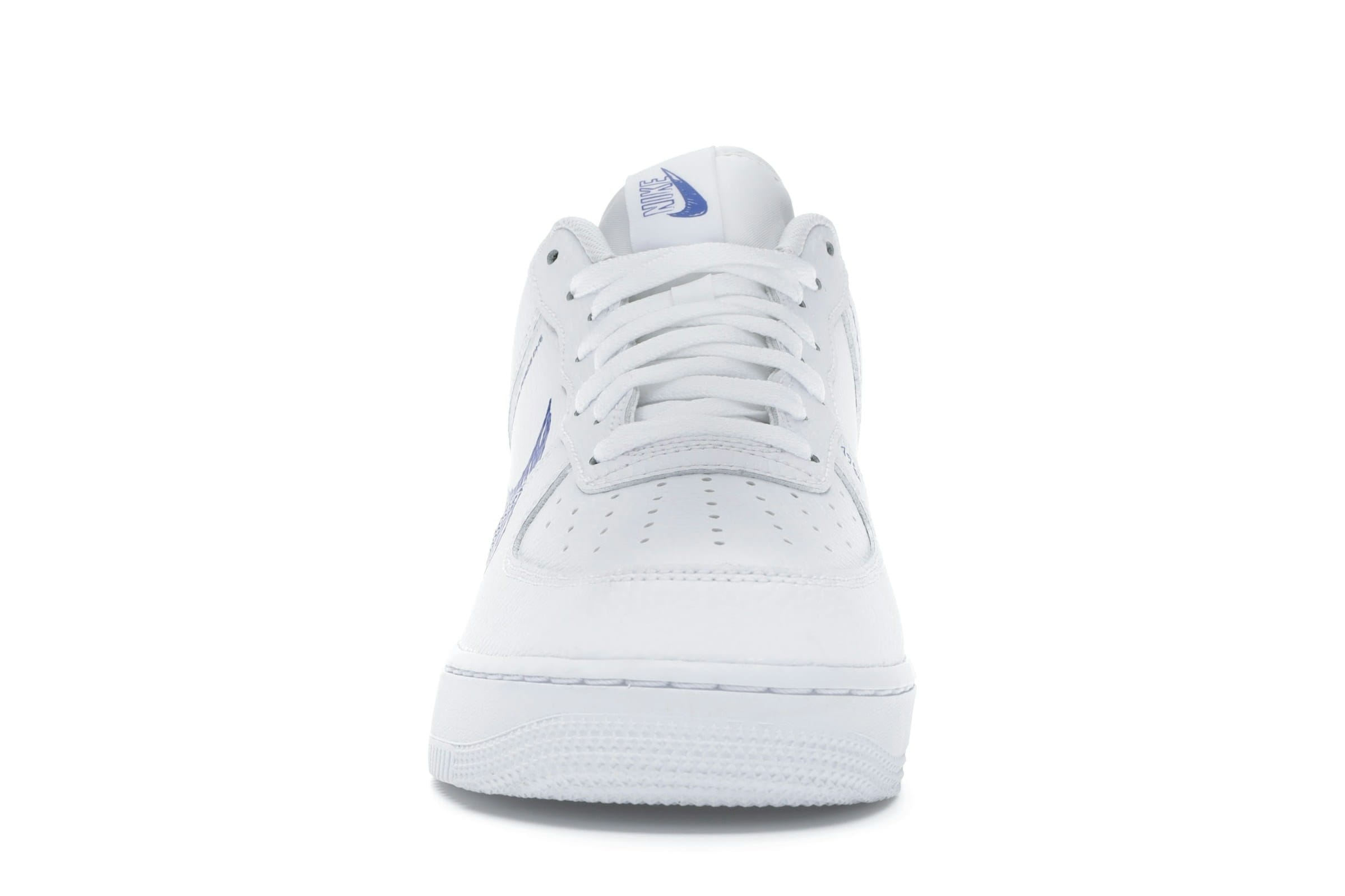 The Nike Air Force 1 Low Sketch White Royal (CW7581-100) is a stylish and unique take on a classic sneaker. This design features a clean white tumbled leather upper, providing a crisp base for the vibrant accents.
