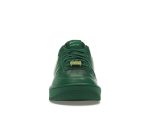 The design features a distinctive elongated citron yellow Swoosh, a vibrant accent that pops against the deep green. This eye-catching detail is repeated on the leather lace dubrae, tongue tag, and heel tab, adding subtle yet impactful branding. The shoe’s comfort is ensured by the classic Air cushioning, offering all-day support. Variable-width lacing and perforated toe box add functional style.