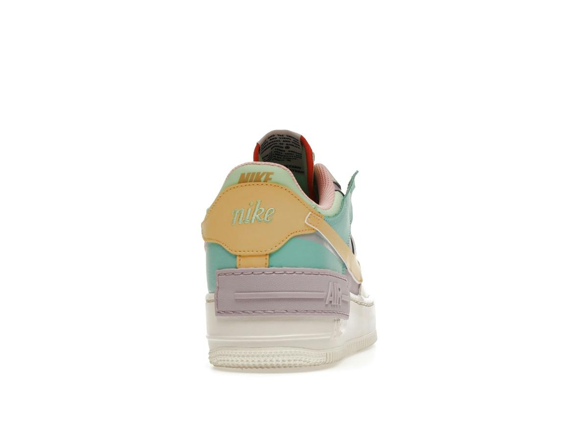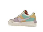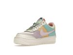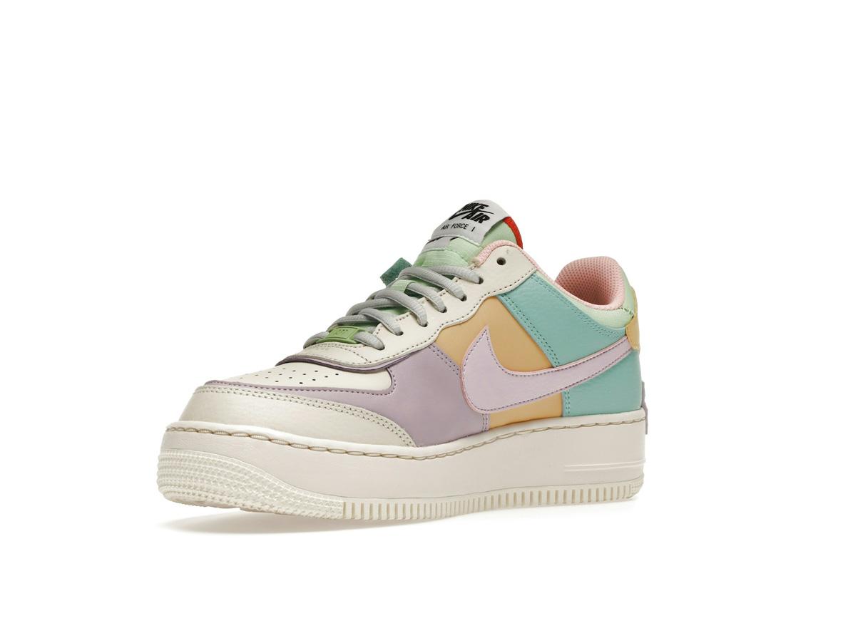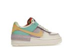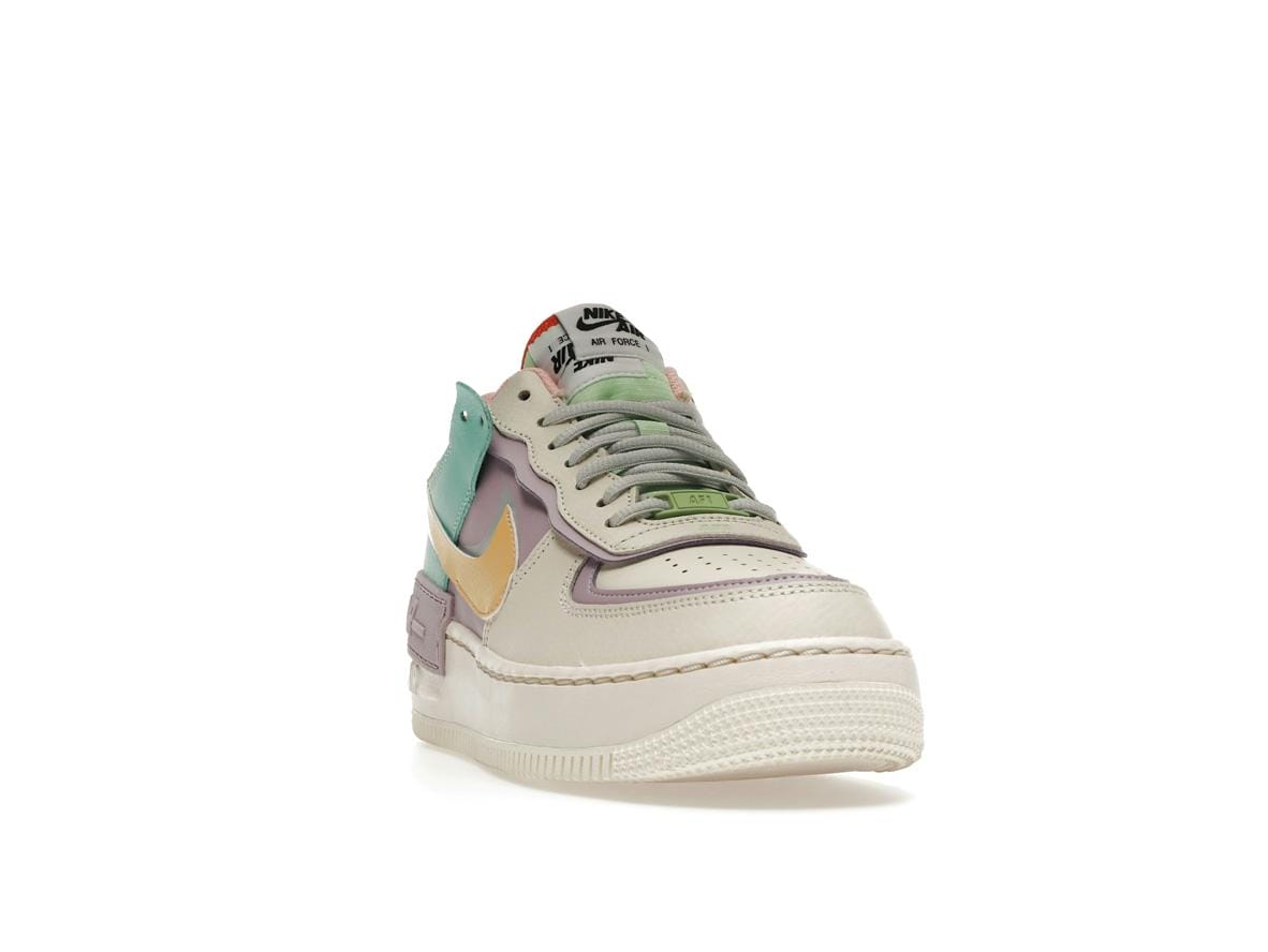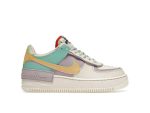 The iconic Air Force 1 design is reimagined in this Shadow iteration, offering a slightly exaggerated sole and layered aesthetic. The subtle gold accents on the heel add a touch of luxury, perfectly complementing the creamy pale ivory base. This sneaker is more than just footwear; it’s a statement piece that reflects both timeless style and contemporary design.