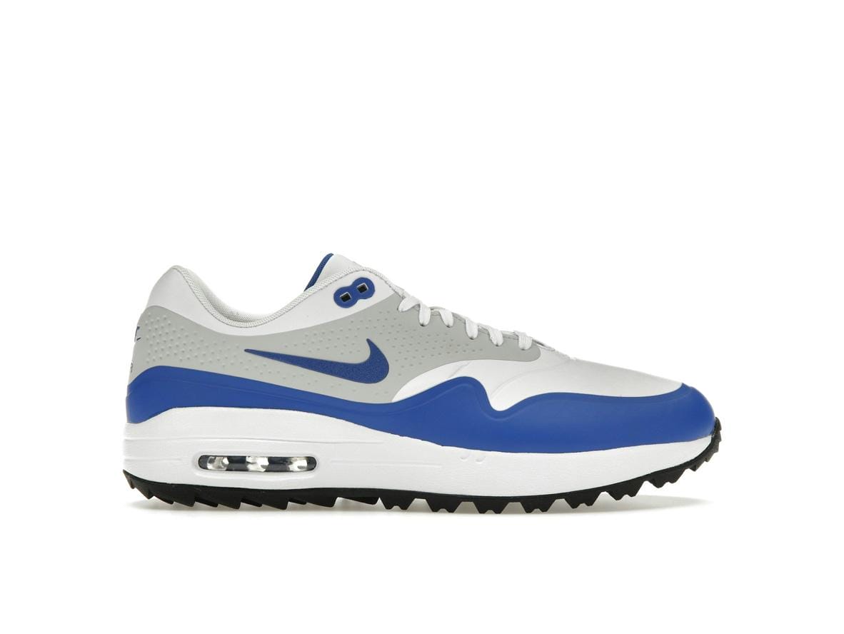 Nike Air Max 1 Golf Game Royal (AQ0863-102). Premium leather & synthetic upper. Air Max cushioning for comfort & stability. Game Royal accents on white/neutral grey. Optimal grip & durable outsole. Perfect for the course.