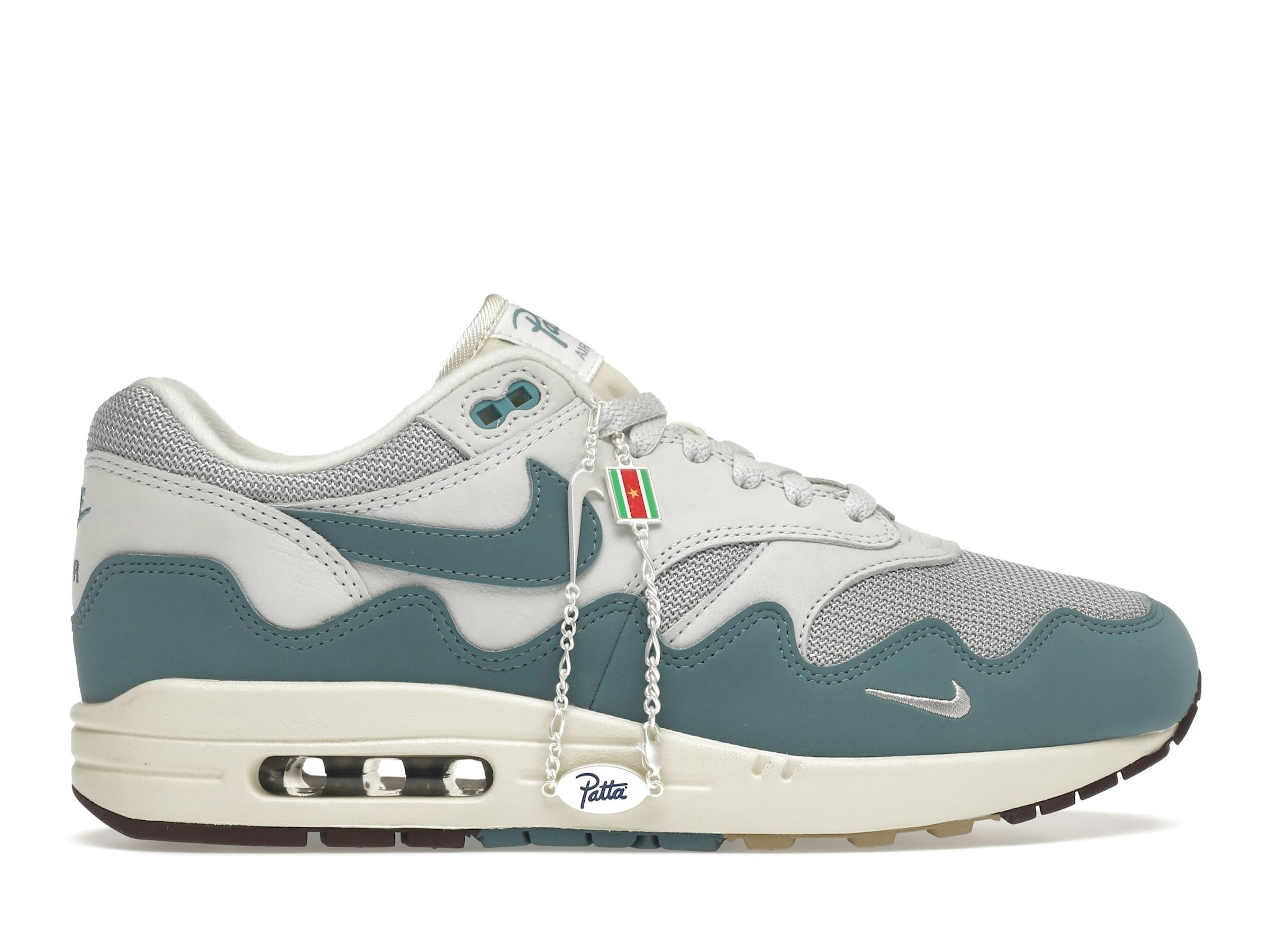 A unique wave-shaped mudguard adds a distinctive touch, while the classic Nike branding on the heel nods to the Air Max 1’s heritage. The design is completed with a clean white midsole, a multicolor outsole for enhanced grip and durability, and custom Patta woven tongue tags adding a premium feel and signifying the collaborative effort.