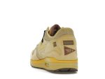 These limited-edition trainers boast a captivating Saturn Gold colourway, featuring a light yellow layered mesh upper accented by matching Durabuck overlays. The reversed Swoosh logos add a distinctive touch, while the innovative drawstring Gillie lacing system a nod to trail running shoes offers a secure and adjustable fit. The design is further enhanced by a yellowed midsole, complete with a visible cloudy Air unit for exceptional comfort and cushioning.