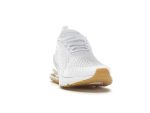 The clean white upper is accented by a stylish gum outsole, creating a versatile look that effortlessly transitions from casual outings to more dressed-up occasions. The herringbone pattern on the outsole offers superior traction, providing stability and grip on various surfaces. Added convenience is provided by the pull tab at the heel, making it easy to slip these sneakers on and off.