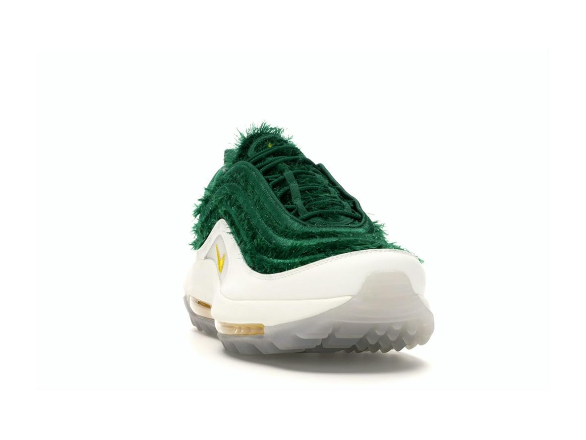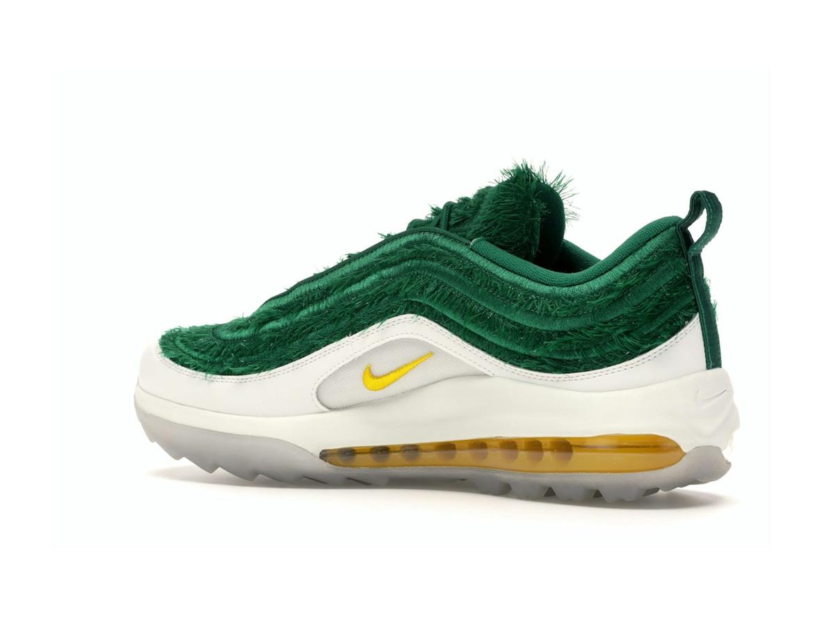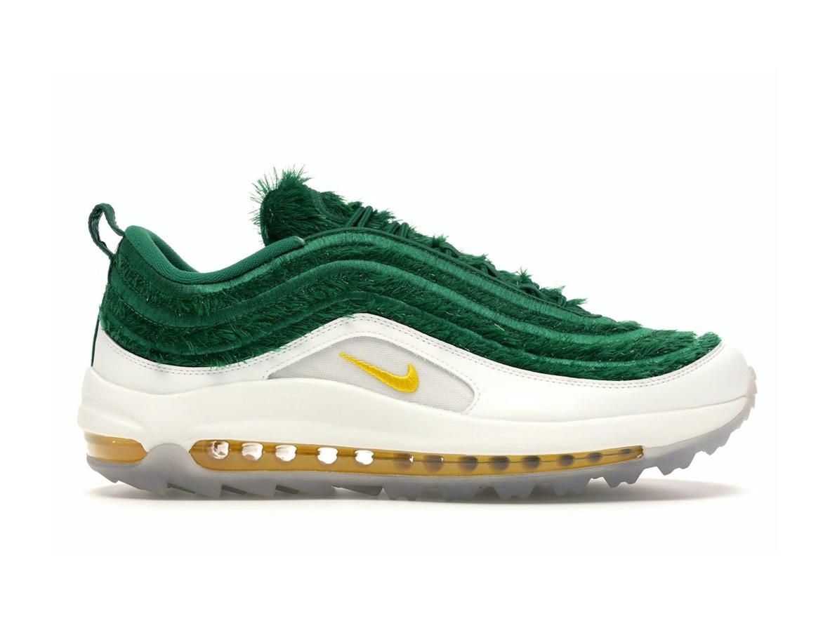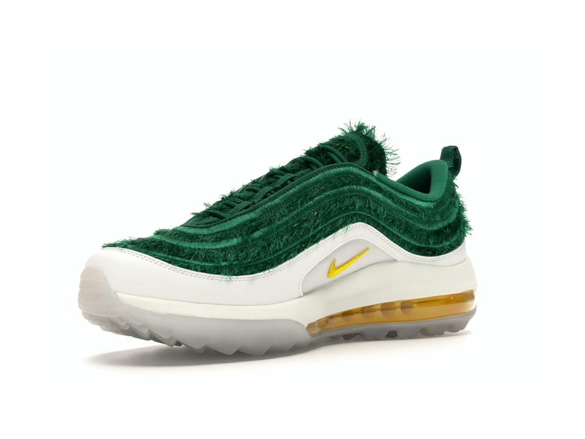 The standout feature is the eye-catching “Grass” upper, mimicking the texture and look of a lush green fairway. This creative design element is a testament to Nike’s commitment to both performance and aesthetic excellence. The classic wavy lines of the original Air Max 97 are faithfully preserved, creating a recognizable and stylish shoe for the modern golfer.