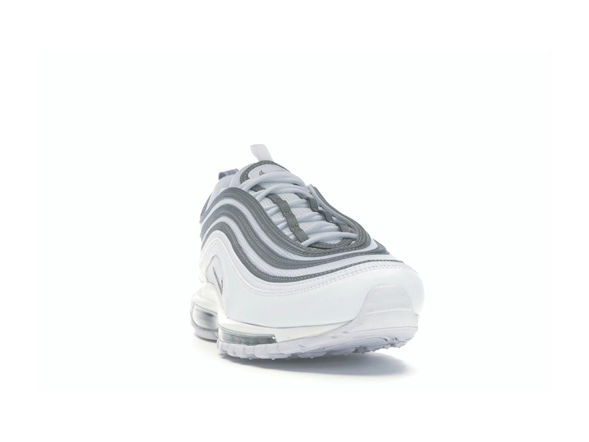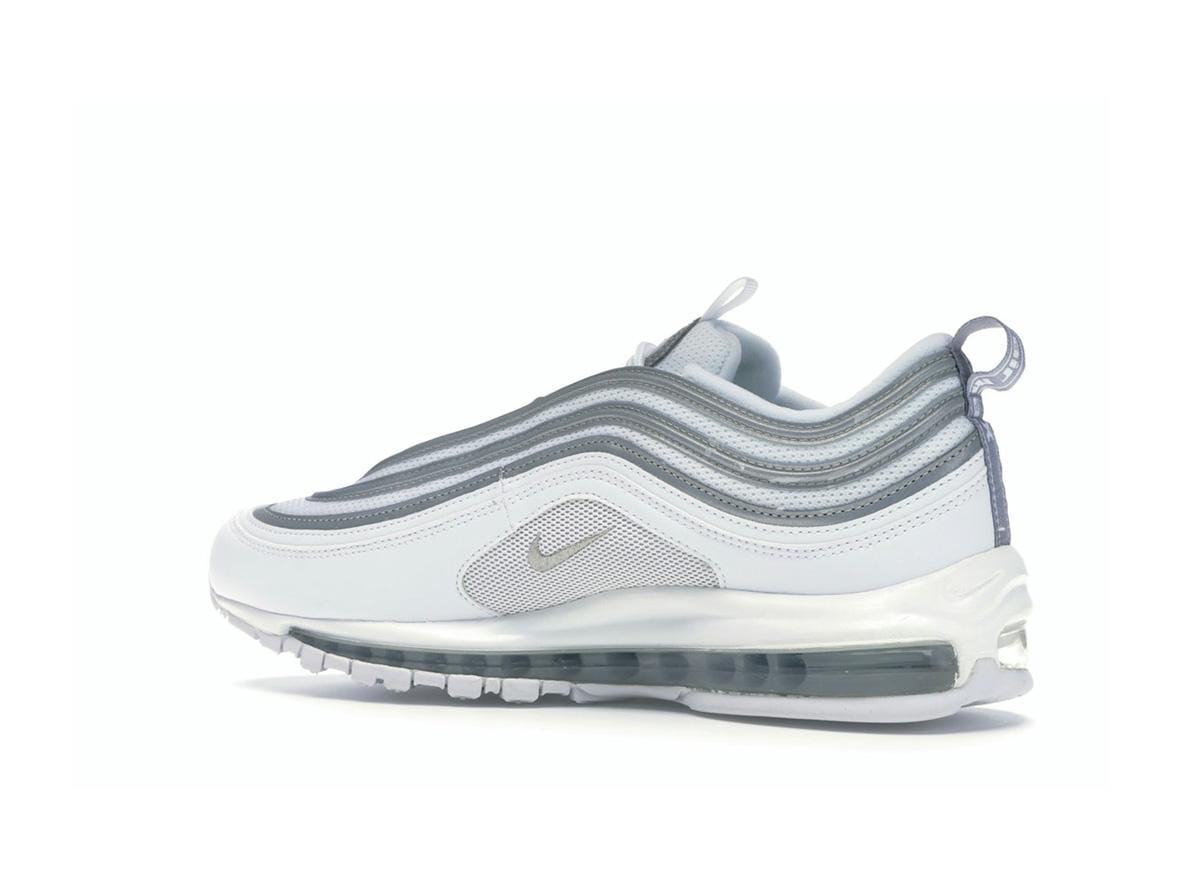 The Nike Air Max 97 White Reflect Silver’s signature feature is its full-length Max Air unit, providing superior cushioning and support with every step. This visible Air-Sole unit not only enhances the shoe’s aesthetic appeal but also contributes to its exceptional comfort and responsiveness. The durable white rubber outsole ensures reliable traction on various surfaces.