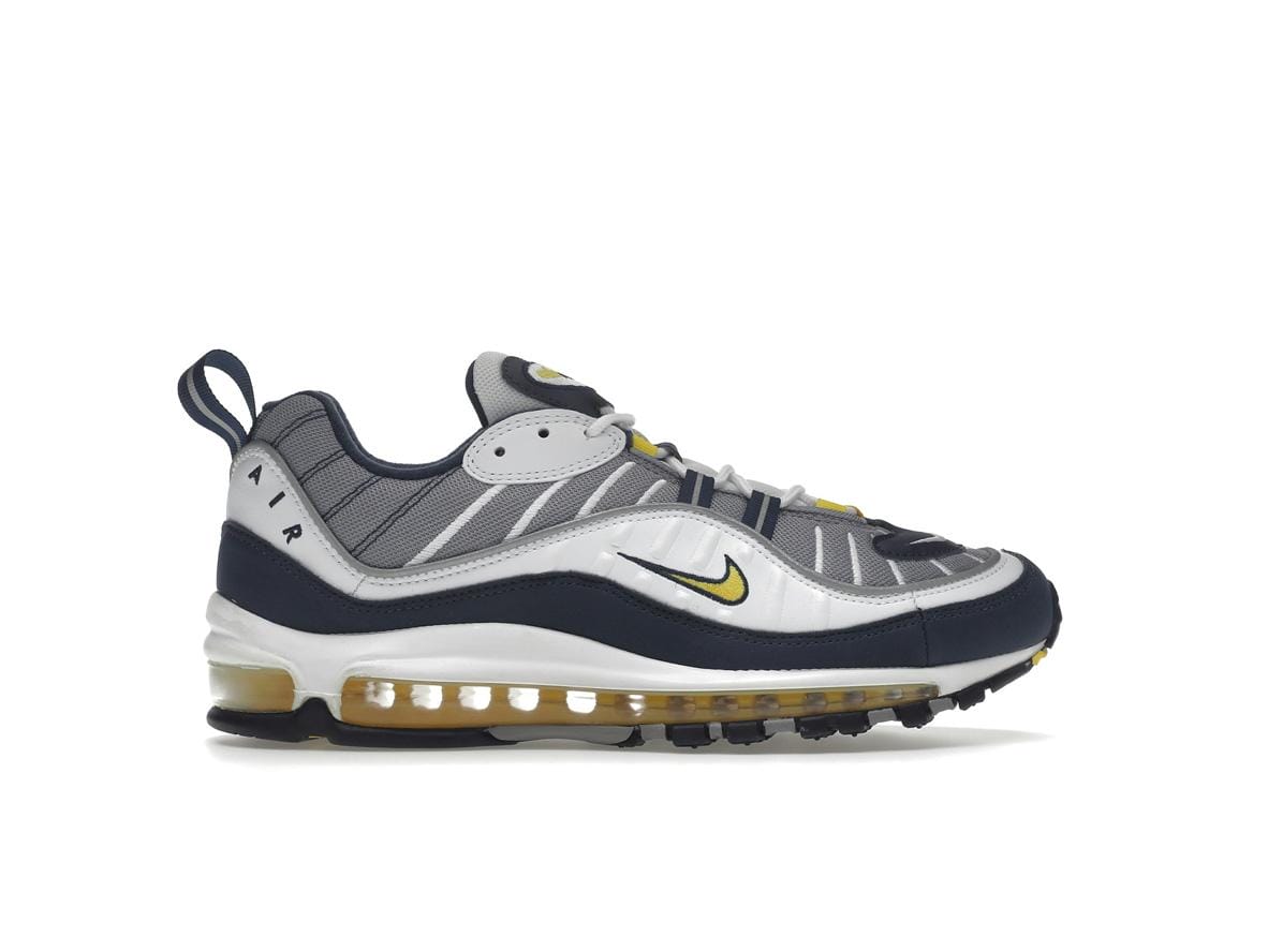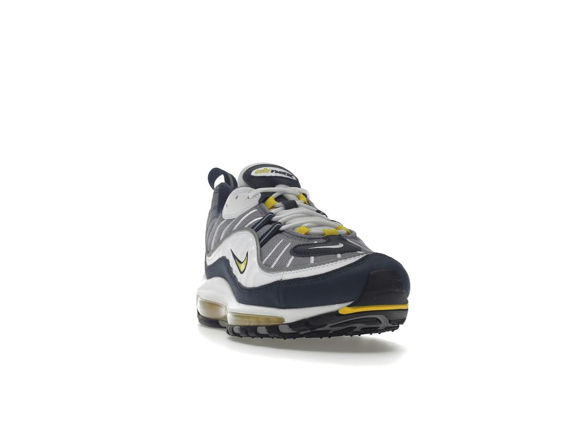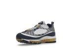 This specific model, with its white, tour yellow, midnight navy, and cement grey color scheme, offers a unique blend of vintage appeal and modern flair. The superior craftsmanship and attention to detail are evident in every stitch, making this pair a worthwhile investment for the discerning sneaker enthusiast. Own a piece of sneaker culture with the Nike Air Max 98 Tour Yellow Grey.