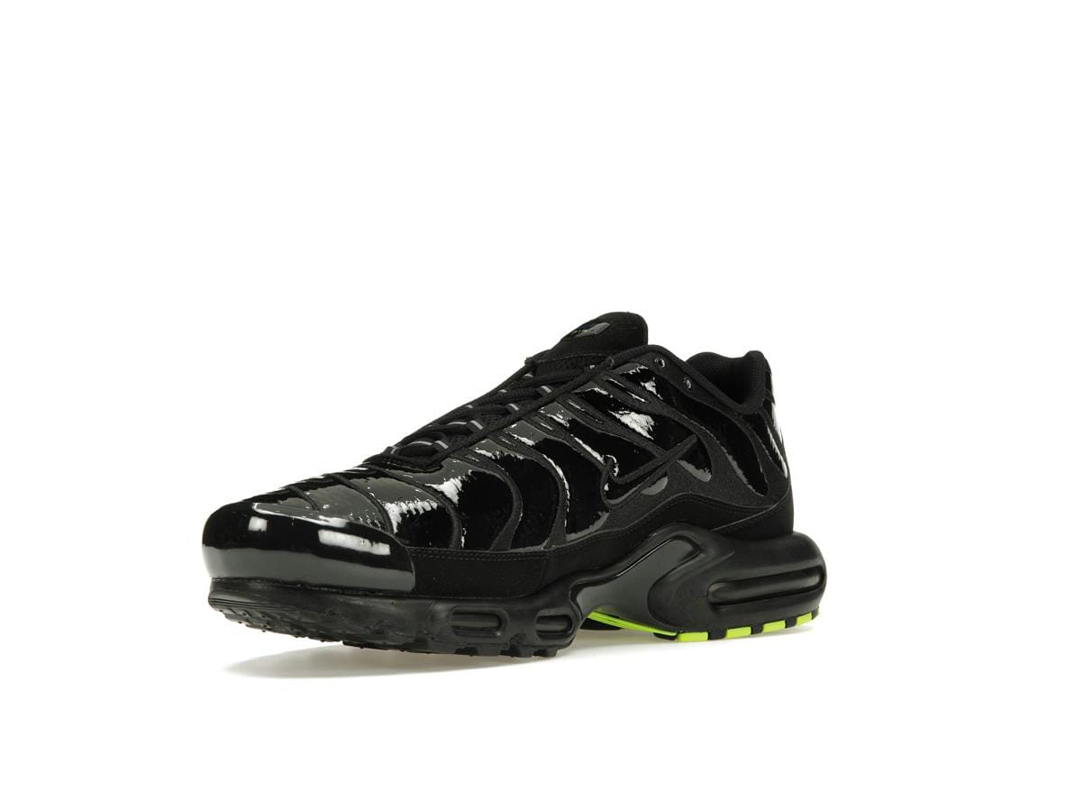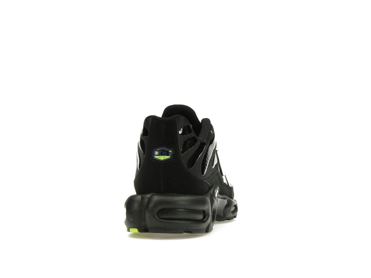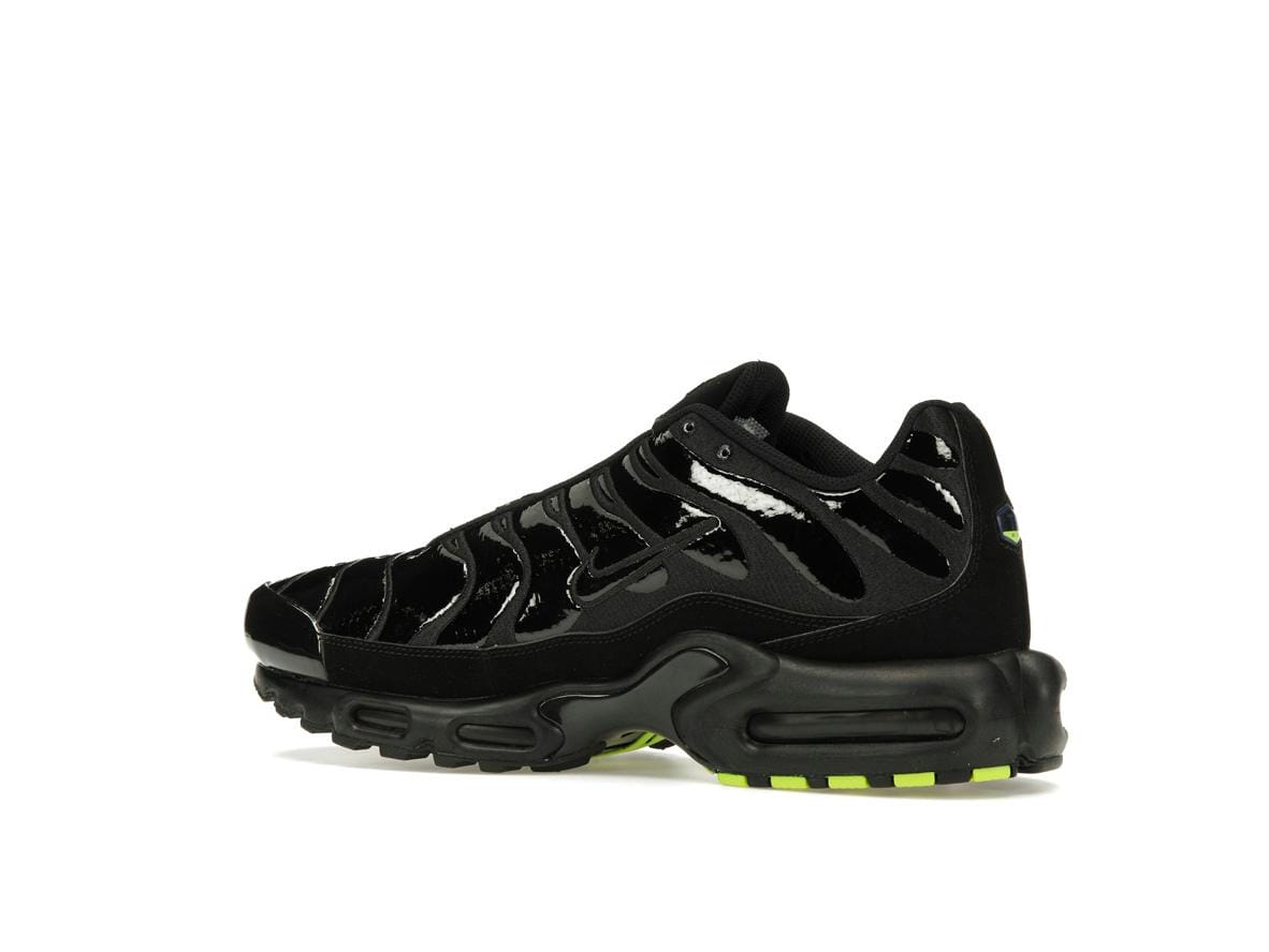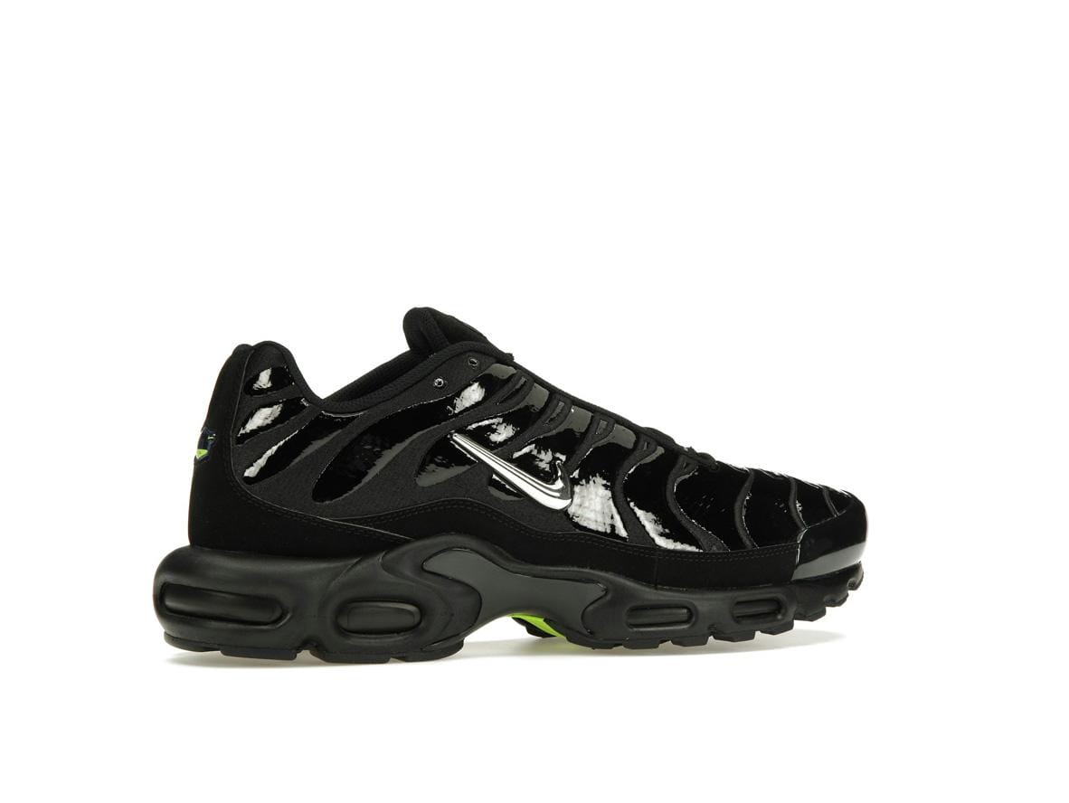 The Nike Air Max Plus Black Chrome features a durable construction built to withstand everyday wear. The combination of black, volt, concord, and metallic silver creates a versatile colorway that pairs perfectly with a variety of outfits. The iconic wavy lines of the upper add a distinct flair, making these sneakers easily recognizable and a conversation starter.