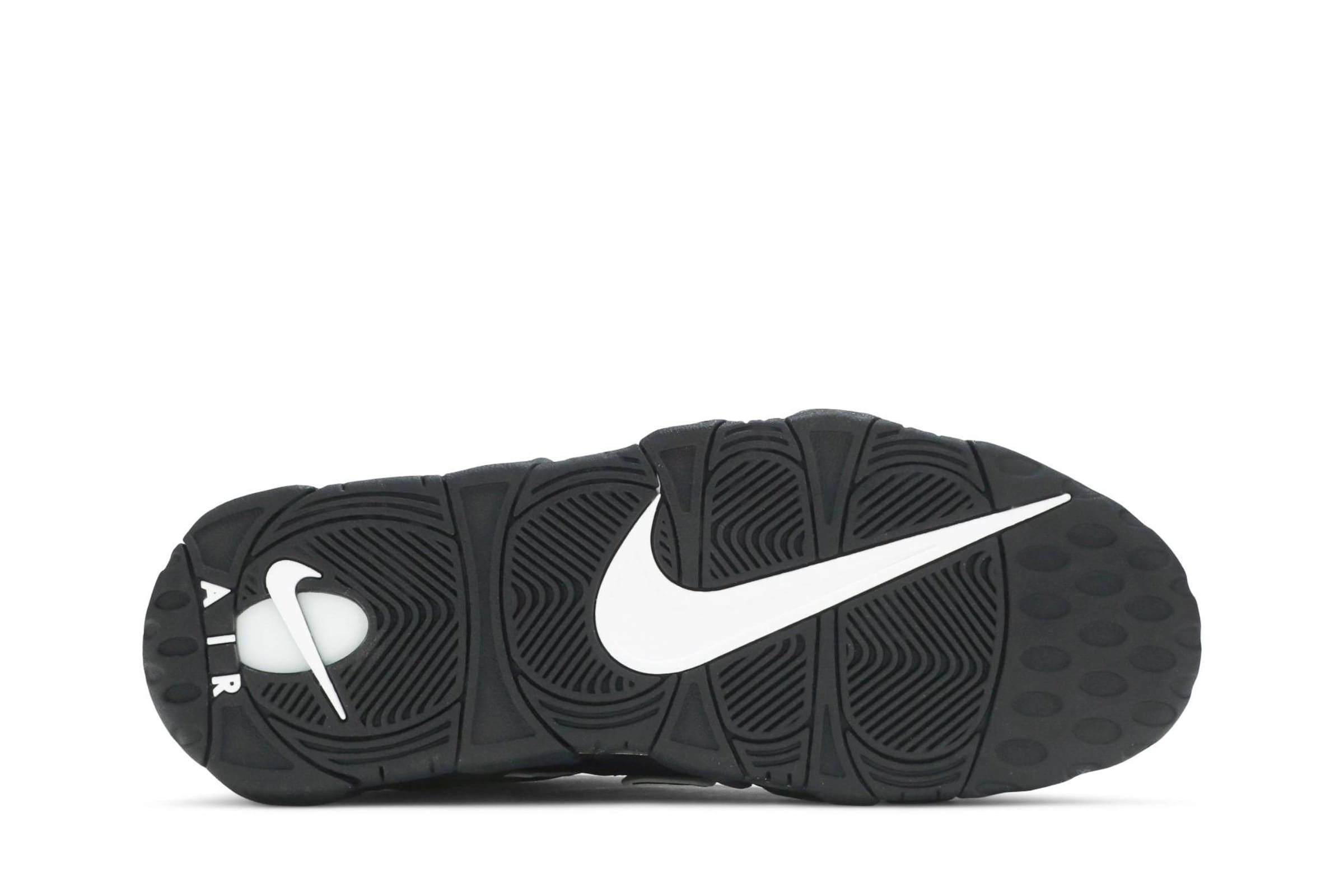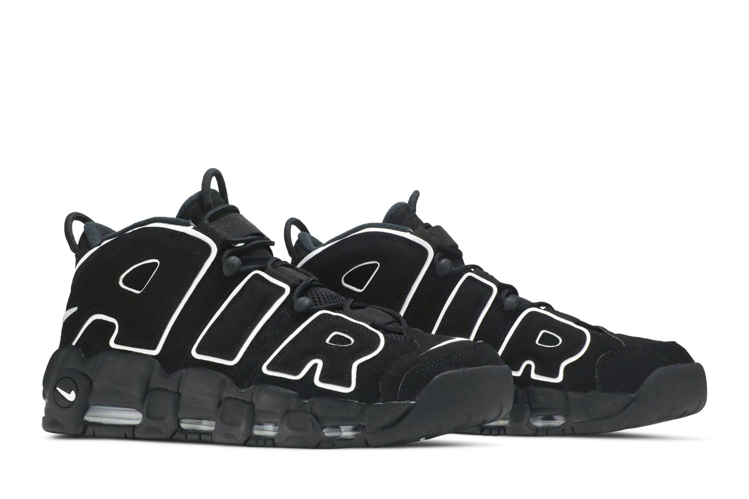 The bold, oversized “AIR” lettering on the side panels is a signature feature of the Uptempo line, making these shoes instantly recognizable. The predominantly black upper is accented with crisp white details, creating a clean and sophisticated look perfect for everyday wear or a night out.