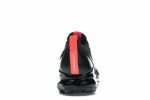 Adding a touch of luxury, the tongue features a shimmering gold material, accented with a subtle crimson detail. This pops against the black upper and is mirrored on the heel tab, creating a sophisticated contrast. The iconic Nike Swoosh is prominently displayed on both the medial and lateral side panels, alongside a VaporMax tag at the ankle for subtle branding.