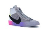The design boasts a striking wolf grey upper, complemented by a bold black Swoosh. The unique color gradient sole transitions smoothly from purple to platinum, adding a touch of vibrant flair to the classic Blazer silhouette. This isn’t just a shoe; it’s a statement piece.