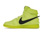 This limited-edition release quickly became a sought-after item for sneaker collectors and fashion enthusiasts alike, admired for its fresh take on a classic design. The combination of the bright Flash Lime green with the stark black Swoosh makes the Nike Dunk High AMBUSH Flash Lime a memorable and stylish addition to any sneaker rotation. The Atomic Green and black accents further enhance the overall design.