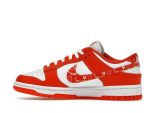 Step out in style with the Nike Dunk Low Essential Paisley Pack Orange, a vibrant addition to any sneakerhead’s collection. These women’s sneakers boast a clean white leather base, beautifully contrasted by striking orange leather overlays. The standout feature is undoubtedly the paisley-patterned textile Swooshes, adding a touch of intricate detail and bohemian flair.