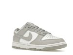 The Nike Dunk Low Grey Fog (DD1391-103) is a clean and versatile sneaker, perfect for everyday wear. Its design features a crisp white leather base, accented by subtle Grey Fog overlays on the swoosh and panels. This color combination creates a minimalist aesthetic that easily complements various styles.