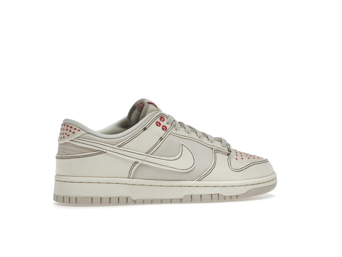 Nike masterfully incorporates the traditional Sashiko technique, known for its bold, decorative stitching, into the sneaker’s design. The Pale Ivory denim upper provides a clean, neutral base, beautifully contrasted by the rich Orewood Brown stitching that outlines the shoe’s form. Accents of red Sashiko stitching add a pop of color across the toe box, heel tab, and eyelets, creating a striking visual texture.