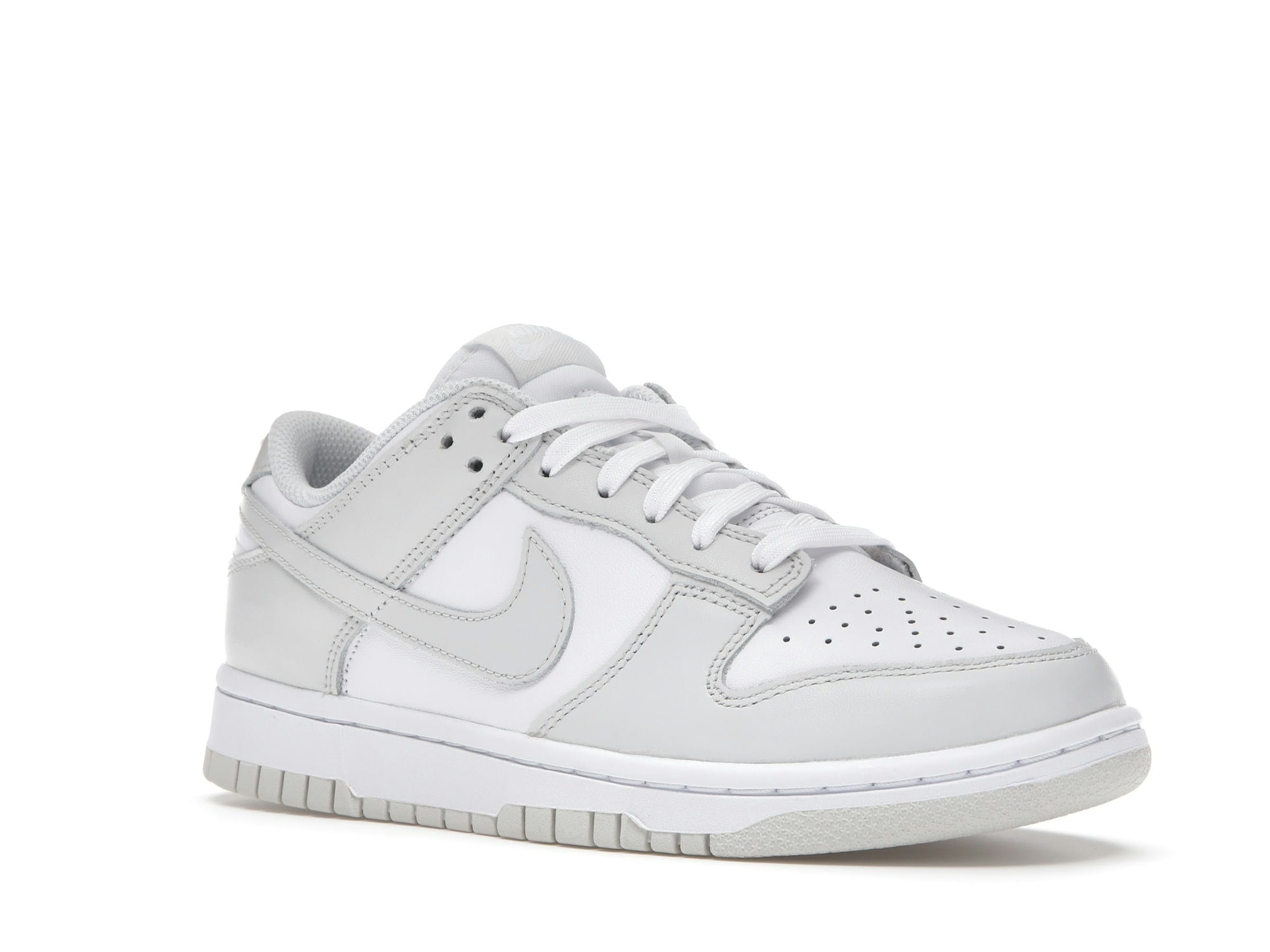 The Nike Dunk Low Photon Dust (Women’s) is a clean and stylish sneaker perfect for everyday wear. This women’s-exclusive release features a crisp white leather base, contrasted beautifully by subtle Photon Dust overlays on the toe, heel, and iconic Swoosh. The soft, almost pastel, Photon Dust shade adds a touch of femininity and a unique visual appeal.