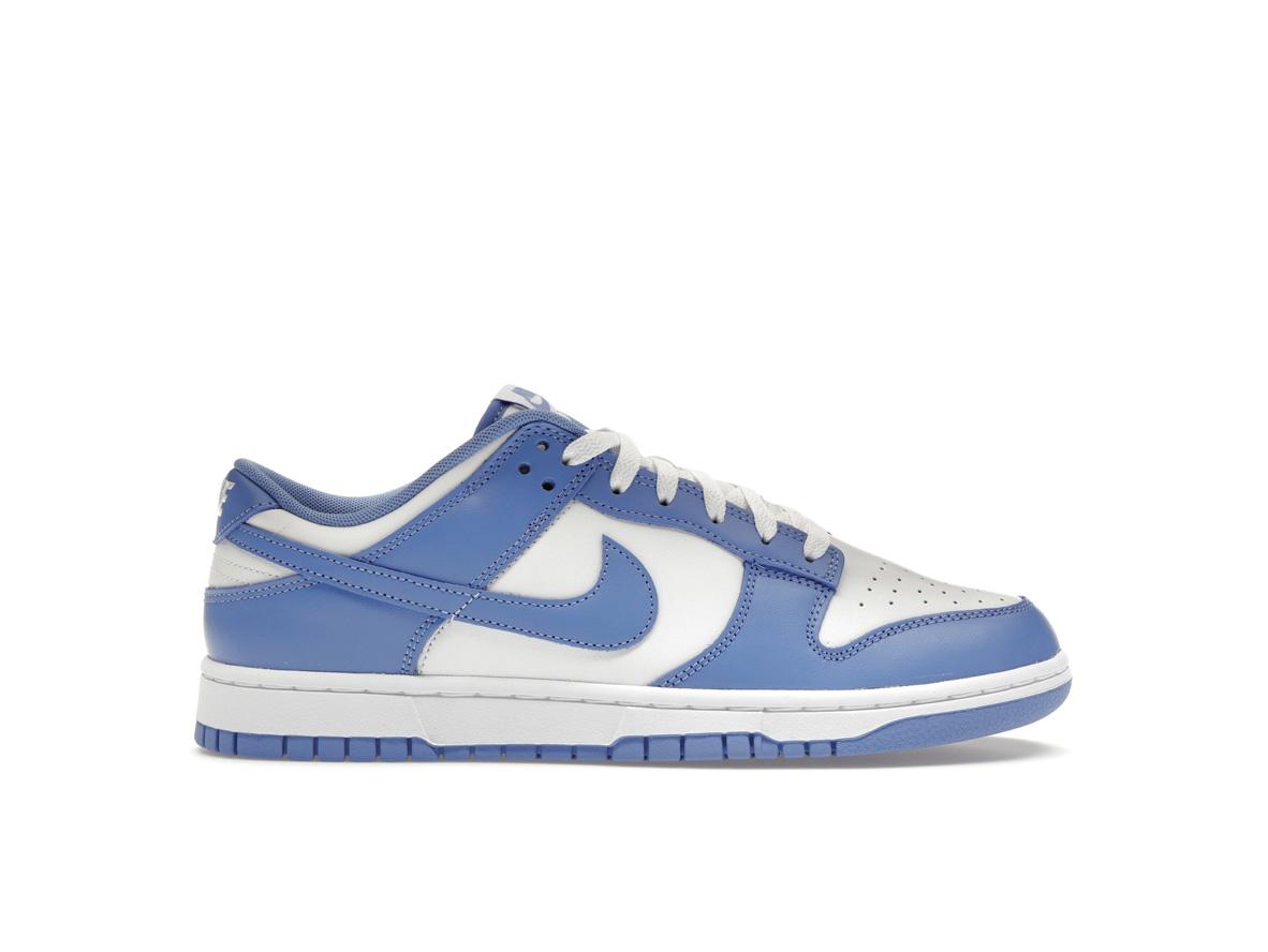 Crafted with premium leather uppers, the Nike Dunk Low Polar Blue boasts a clean white base accented by striking Polar Blue overlays. This captivating color combination adds a crisp, contemporary feel. The Polar Blue accents elegantly highlight the perforated toe box, heel, laces, and midsole, while the signature Nike Swoosh also receives the Polar Blue treatment. The comfortable padded tongue and visible white Nike branding on the heel complete the design.