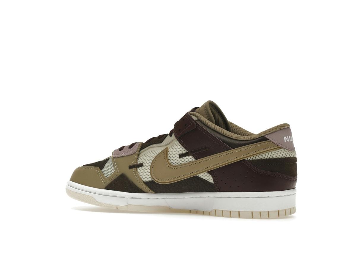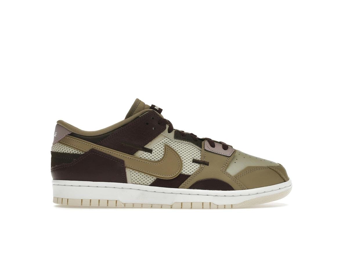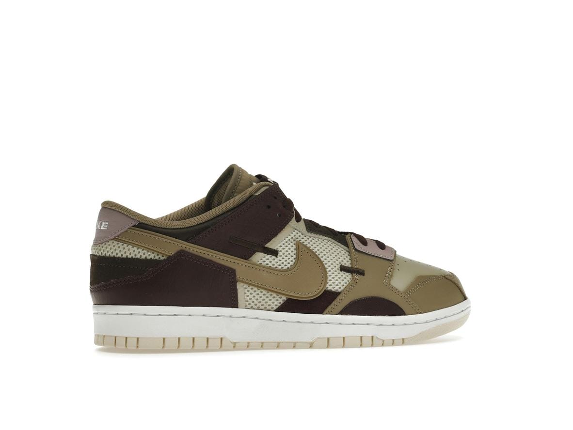 Crafted with a premium mix of mesh, leather, and suede, the Nike Dunk Low Scrap Latte offers both durability and breathability. The exposed stitching adds a handcrafted detail, enhancing the shoe’s overall aesthetic. Noticeable design elements include the double Swooshes and subtle Nike branding on the heel tab and tongue tag, adding a touch of understated elegance.