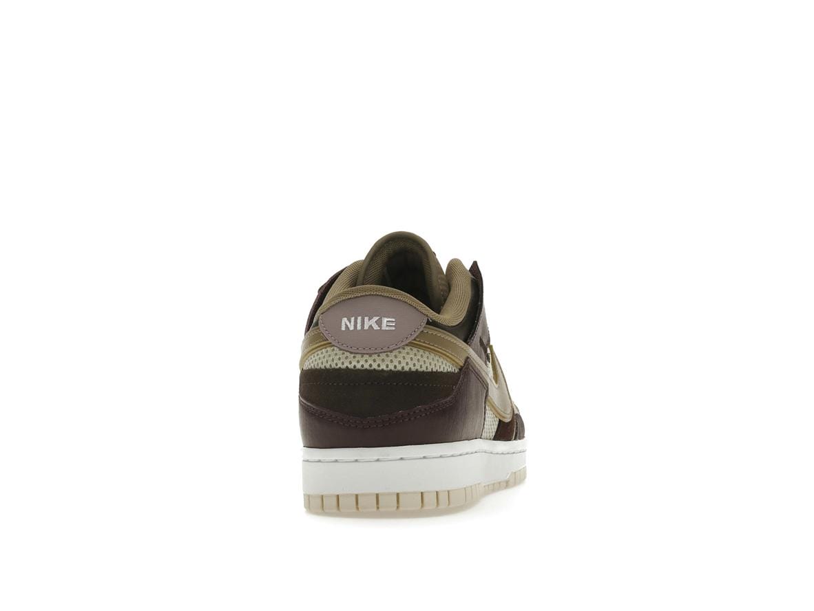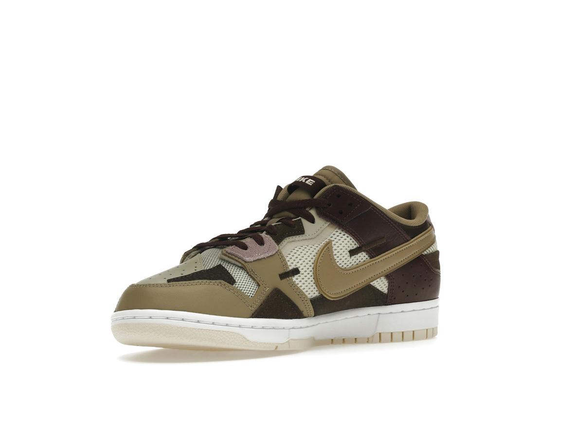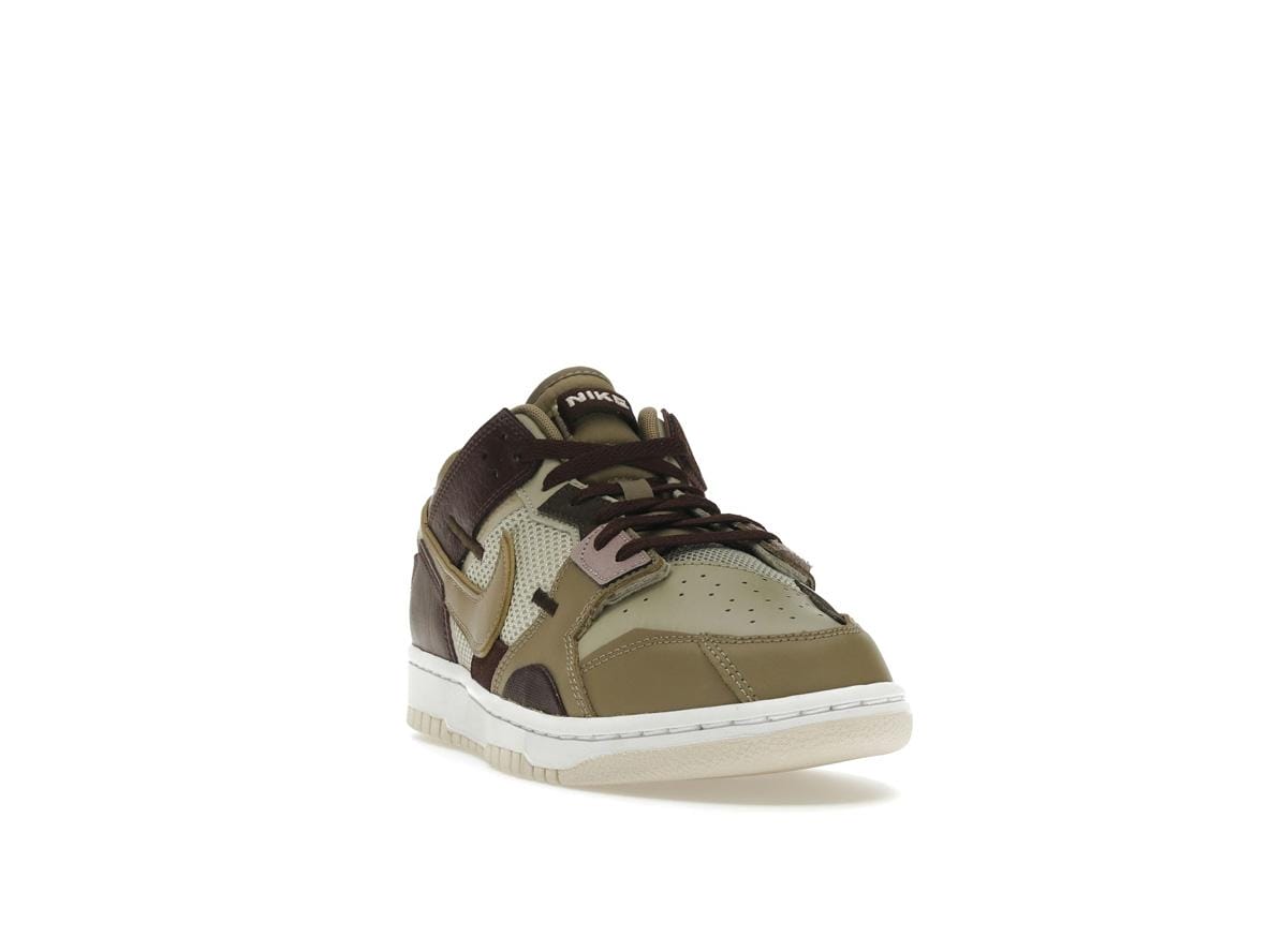 Crafted with a premium mix of mesh, leather, and suede, the Nike Dunk Low Scrap Latte offers both durability and breathability. The exposed stitching adds a handcrafted detail, enhancing the shoe’s overall aesthetic. Noticeable design elements include the double Swooshes and subtle Nike branding on the heel tab and tongue tag, adding a touch of understated elegance.