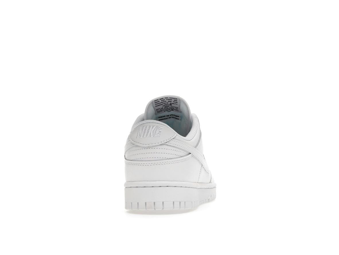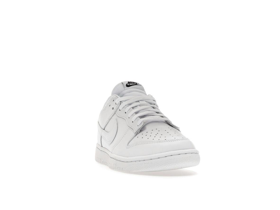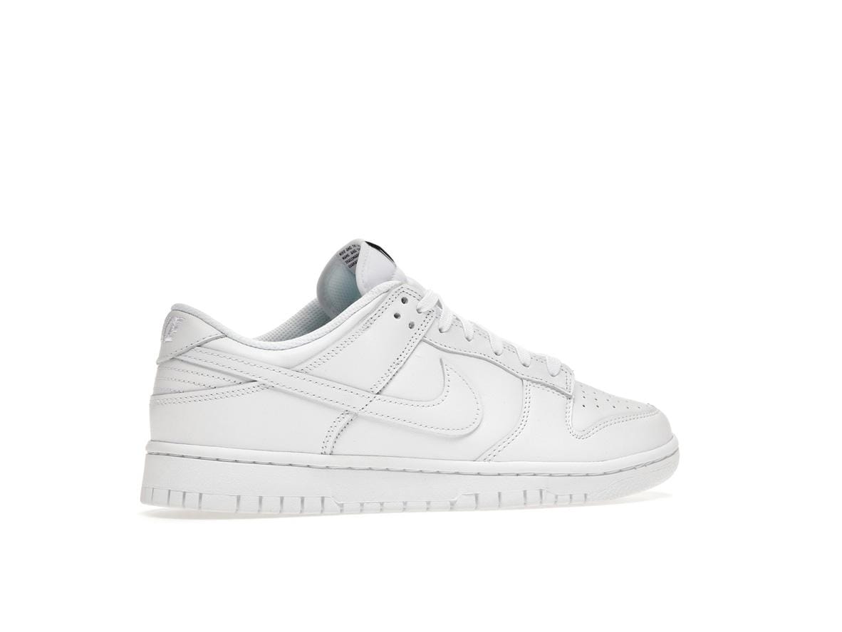 Crafted with premium leather uppers, the Nike Dunk Low Triple White offers both comfort and durability. The supple leather side panels and breathable mesh tongue ensure a superior fit and feel. Subtle black accents on the Nike branding on the tongue and insoles provide a touch of contrast against the crisp, all-white palette.