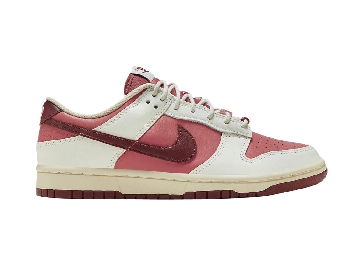 Featuring a captivating blend of Sail, Team Red, Medium Soft Pink, Alabaster, and Coconut Milk, this Nike Dunk Low offers a sophisticated and subtly romantic aesthetic. The soft pink and creamy tones create a delicate contrast against the vibrant red accents, resulting in a shoe that’s both eye-catching and versatile. These colors are perfectly suited for everyday wear, from casual outings to date nights.