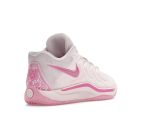 These Nike KD 17 Aunt Pearl sneakers showcase a predominantly pink foam colourway, accented by iridescent “KD” branding on the tongue and heel. The subtle shimmer adds a touch of elegance to the already striking design. The embroidered details on the heel are more than just decoration; they represent the deep emotional connection Kevin Durant shares with his aunt and her legacy. This attention to detail elevates these sneakers beyond a simple athletic shoe, making them a truly meaningful piece.