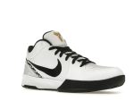 The shoe boasts a classic black and white colorway, elevated by elegant checkerboard accents on the heel. Gold detailing on the tongue and heel, along with Gigi Bryant’s jersey number (2), adds a touch of personal significance. The shoe’s premium feel is further enhanced by three included lace options for a customized look.