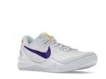 Experience the legacy of Kobe Bryant with the Nike Kobe 8 Protro Lakers Home. This men’s basketball shoe pays homage to the Los Angeles Lakers, boasting a clean white engineered mesh upper that mirrors the team’s home uniforms. The crisp white is beautifully contrasted by vibrant court purple accents, including the embroidered Nike swoosh, and pops of university gold on the heel clip and tongue, showcasing Kobe’s signature logo. This striking color combination makes a bold statement on and off the court.