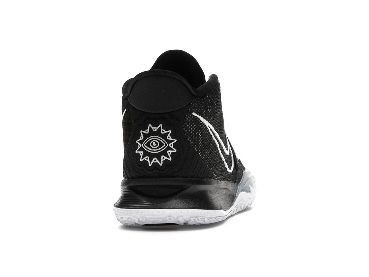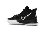 The striking black upper is accented with crisp white details, creating a clean and sophisticated look. The iconic Swoosh logo is prominently displayed, alongside Kyrie Irving’s signature logo on the tongue, showcasing the collaboration between Nike and one of basketball’s greats. The shoe’s design isn’t just about aesthetics; it’s engineered for peak performance on the court.