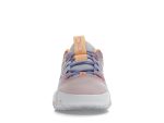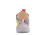 The eye-catching upper features a unique multicolored design. Think abstract expressionism on your feet! A blend of pink, blue, and citrus orange creates a striking mosaic effect. This dynamic color blocking extends throughout the shoe, offering a cohesive and energetic look.