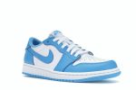 Inspired by the classic 1985 Jordan 1 High “UNC,” this low-top version boasts a clean white leather upper accented by striking dark powder blue overlays and a crisp white midsole. The iconic Swoosh, rendered in the same powder blue, adds a touch of unmistakable Jordan branding. The University of North Carolina’s signature colorway adds a layer of heritage and timeless appeal, a tribute to Michael Jordan’s college days.