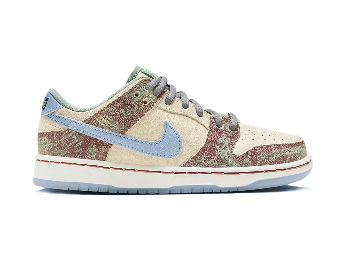 These Dunk Lows feature a premium leather construction, ensuring durability and comfort for all-day wear. The Sail base provides a clean canvas, accented by pops of Light Blue and Cedar for a vibrant yet balanced look. The comfortable cushioning provides excellent support and impact protection, crucial for young skaters. The iconic Dunk silhouette remains instantly recognizable, making these sneakers perfect for skating, street style, or everyday wear.
