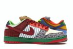 The Nike SB Dunk Low What the Dunk (318403-141) is a legendary sneaker, a vibrant collage of iconic Dunk SB designs. This low-top masterpiece celebrates the history of the Dunk SB line with a wildly creative, mismatched aesthetic.