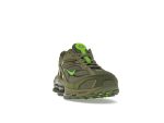 Experience unparalleled comfort and style with the Nike Shox Ride 2 SP Supreme Olive sneakers. These stylish kicks boast a unique design, blending a pale olive mesh upper with darker olive suede and leather overlays for a premium look and feel. Accenting the olive tones is a vibrant Electric Green Swoosh, adding a pop of color that complements the overall aesthetic. The intricate webbed paneling adds depth and texture, enhancing the shoe’s visual appeal.