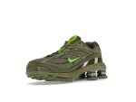 These Nike Shox Ride 2 SP sneakers, in the coveted Supreme Olive colorway (DN1615-200), offer a perfect balance of classic design and modern comfort. The neutral olive and electric green color scheme ensures these shoes are a timeless addition to any wardrobe. Secure your pair of these highly sought-after sneakers and experience the ultimate in comfort and style.