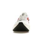 The lightweight, breathable white mesh upper provides excellent ventilation, keeping your feet cool and dry during even the most intense runs. A striking red stripe adds a vibrant design element, complemented by the iconic black Nike Swoosh. These details create a visually appealing shoe that performs as well as it looks.