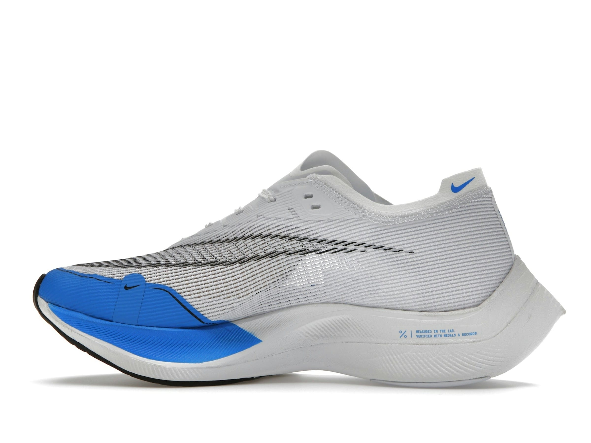Experience unparalleled performance with the Nike ZoomX Vaporfly Next% 2 in White/Photo Blue. Designed for long-distance running, these shoes combine lightweight breathability with exceptional cushioning for ultimate comfort and speed.