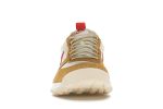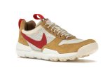 The shoe features a captivating Natural/Sport Red-Maple colorway. A combination of off-white mesh on the toe box and quarter panel is complemented by sophisticated Maple nubuck overlays. The crisp white laces provide a clean contrast to the bold Sport Red Swoosh, which adds a striking visual element. The durable outsole boasts a heavy lug pattern, ensuring excellent traction on various surfaces.