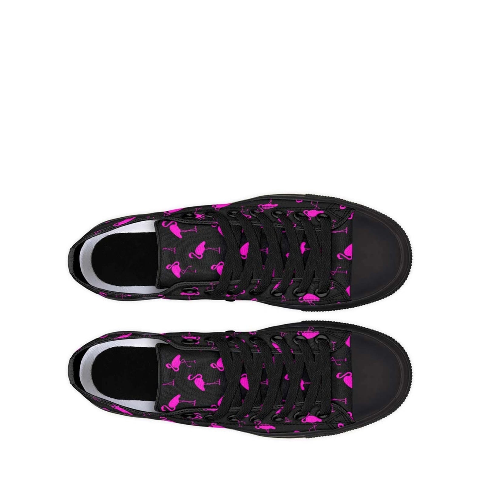 Step into a world of whimsical style with our Pink Flamingo Vector Pattern Black Lowtop Sneakers. These eye-catching sneakers are the perfect blend of playful design and practical comfort, making them a must-have for anyone looking to add a splash of fun to their footwear collection. Featuring a unique pink flamingo pattern set against a sleek black canvas, these sneakers are designed to turn heads and elevate any outfit.