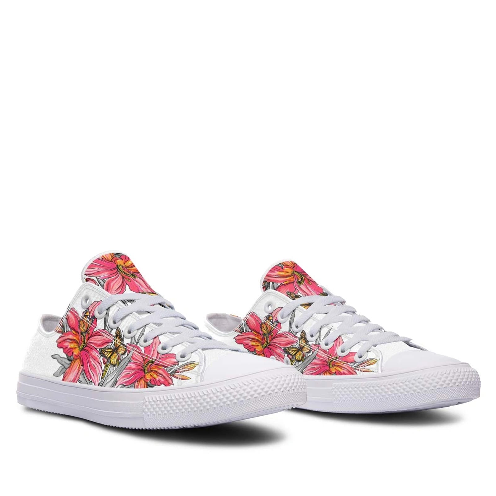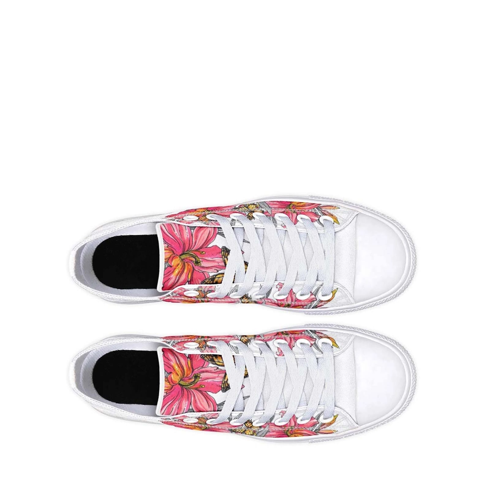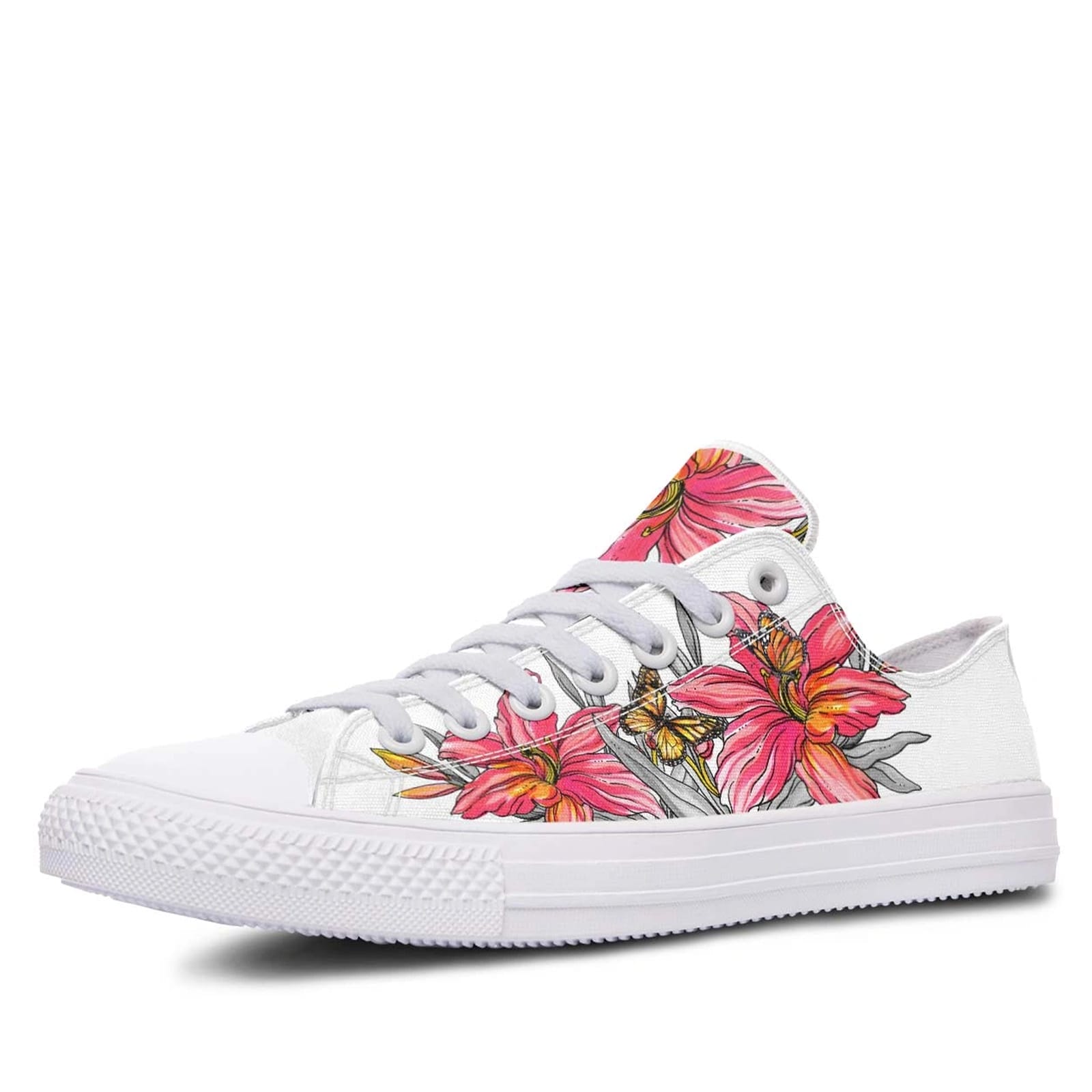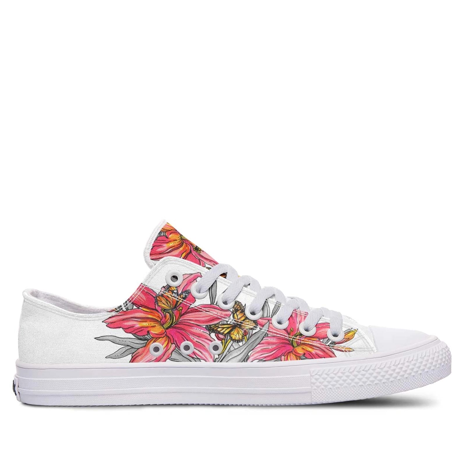 The Pink Flower and Butterfly White Lowtop Sneakers are a must-have for anyone looking to add a floral flair to their wardrobe. With their unique design and built-in comfort, these sneakers are as practical as they are pretty, ensuring you look and feel great wherever you go.