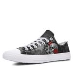 Whether you’re exploring the city, attending a casual gathering, or simply enjoying a day out, the Skull and Clock with Rose Dusty Pattern White Lowtop Sneakers will keep you stylish and comfortable. Their distinctive design makes them a standout addition to any outfit, effortlessly drawing attention and compliments.