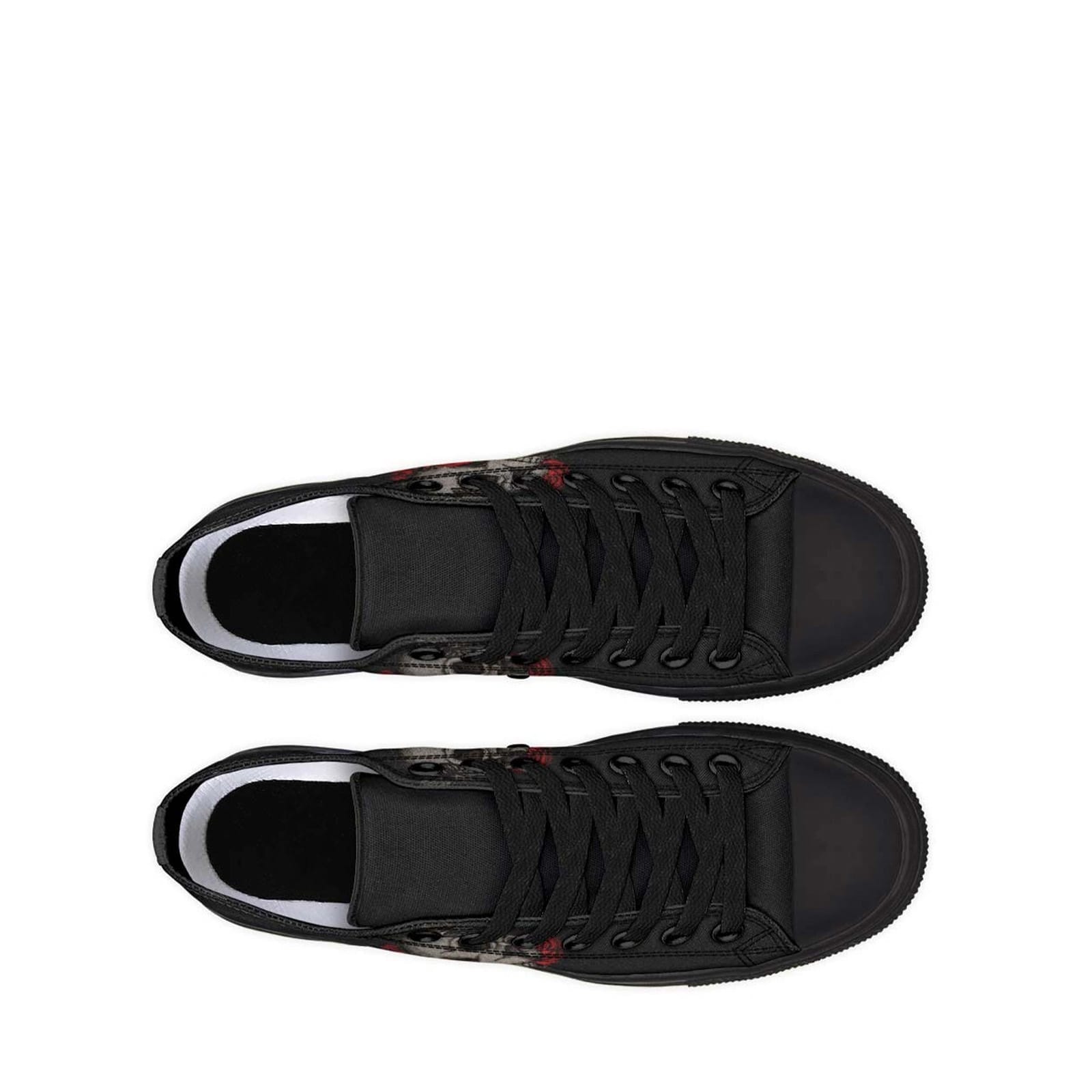 Unleash your edgy side with our Skull and Rose Tattoo Pattern Black Lowtop Sneakers. These striking sneakers blend the rebellious spirit of tattoo art with the classic comfort of lowtop design, making them a standout addition to any fashion-forward wardrobe. Featuring a bold, intricate skull and rose pattern, these sneakers are perfect for those who dare to make a statement with their style.