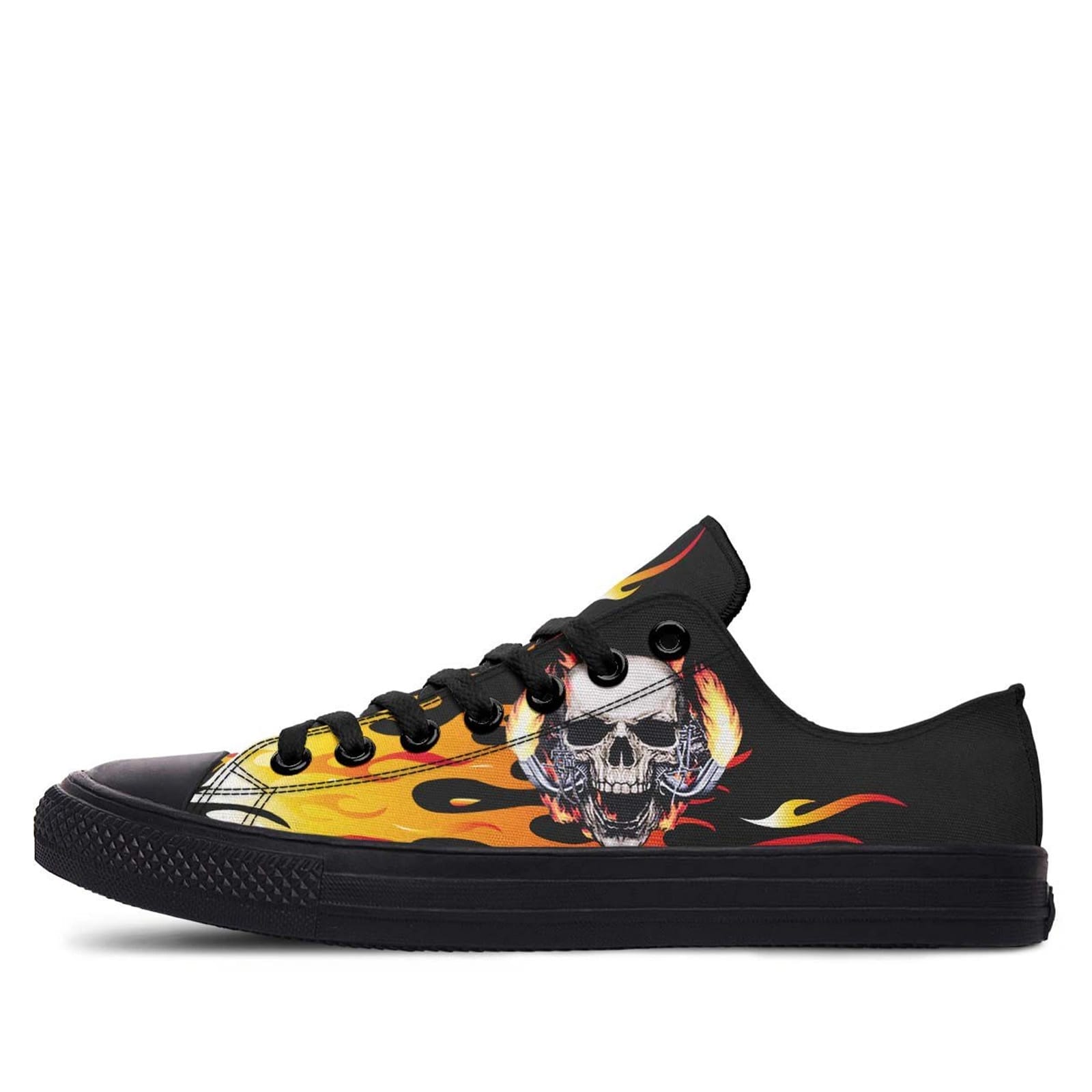 The Skull on Fire Lowtop Sneakers are more than just shoes—they are a statement of individuality, perfect for those who embrace an alternative lifestyle and want their footwear to reflect their unique style. Whether you’re into alternative fashion, gothic style, or simply want to stand out from the crowd, these sneakers are made for you.